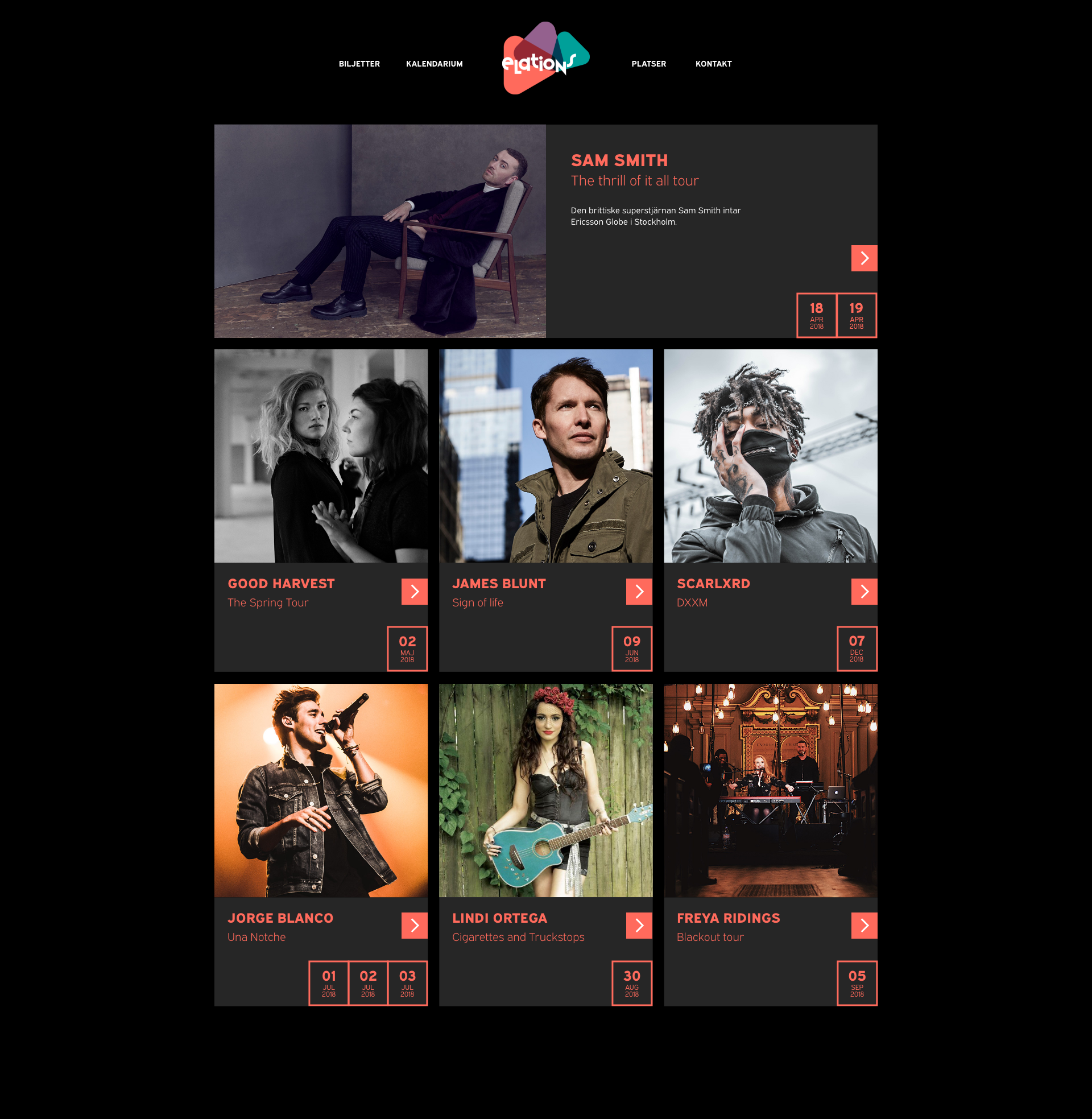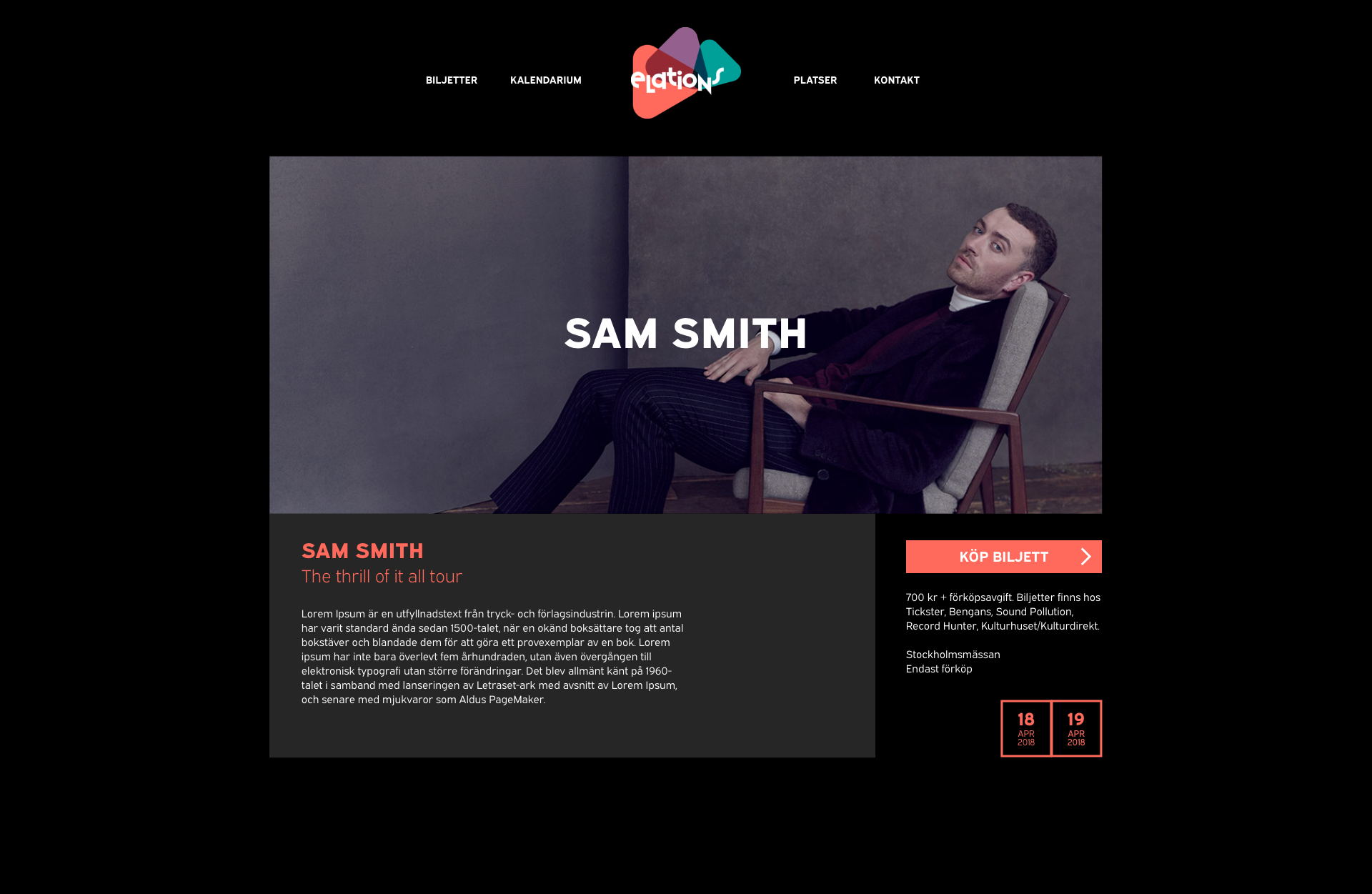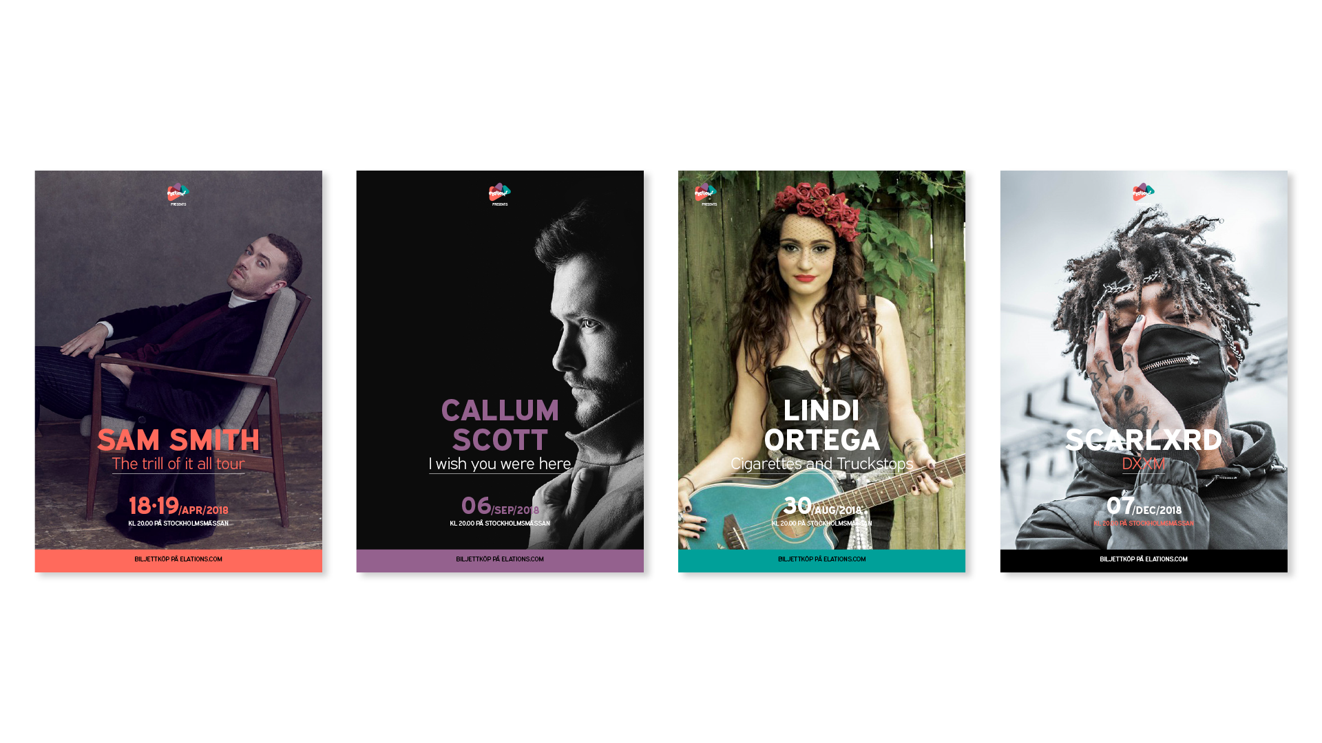 Elations är en arrangör av musikevenemang stora som små på olika scener runt om i Stockholm. Logotypen symboliserar en "play" symbol eller ett plektrum som i en triptyk bildar scenljus.